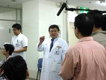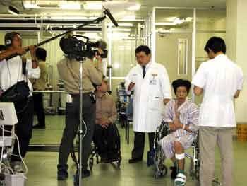 数名のNHkスタッフが撮影に参加し、トレッドミル歩行訓練についての撮影が開始されました。