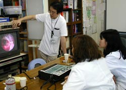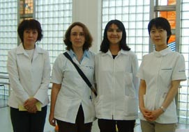 JICA・チリ・リハビリテーションプロジェクトの研修でCarolina GARCIA(リハ医)、Angelica GUTIERREZ(ST) の2名の先生が、7月14日―7月16日の間、藤田保健衛生大学リハビリテーション部門を訪問しました。 藤田保健衛生大学病院では病院や訓練室の見学をして,嚥下リハを中心に研修を受けました。続いて舞台を七栗サナトリウムに移し、FIT programや言語療法の場面を勉んでもらいました。 |