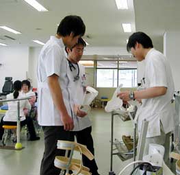 | 勉強熱心な療法士との二人三脚が、最大の成果を生みだします。リハビリ専門学校と平成16年開講の衛生学部リハビリテーション学科を藤田学園内に持っていますので、同じポリシーをもったチームが作りやすいわけです。 | |
