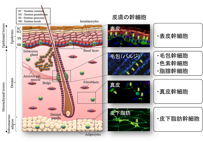 この皮膚における幹細胞の減少が、皮膚の老化や機能低下につなげっていると考えています。