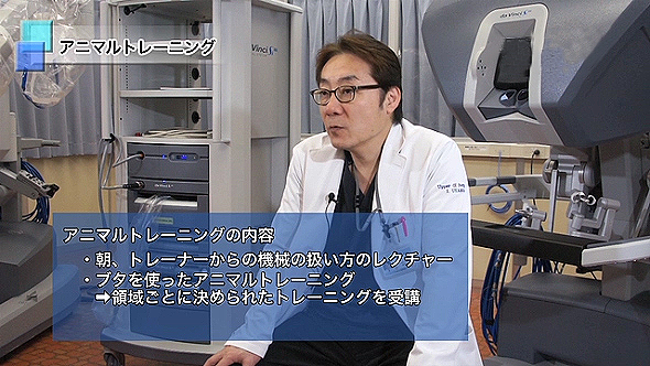 このアニマルトレーニングは疾患に特化したものではなく、ダ ヴィンチ自体の使い方についてのものです。そのためトレーニングの指導は医師ではなくIntuitive Surgical, inc. からトレーニングを受けた企業の方が行いま す。