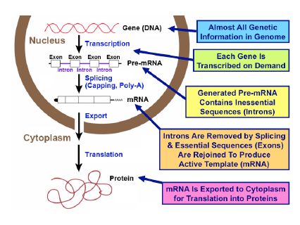 The cell nucleus, the central unit of living matter, contains genes (as DNA) that carry almost all genetic information. How is such important information processed and transferred to make the proteins essential for life?