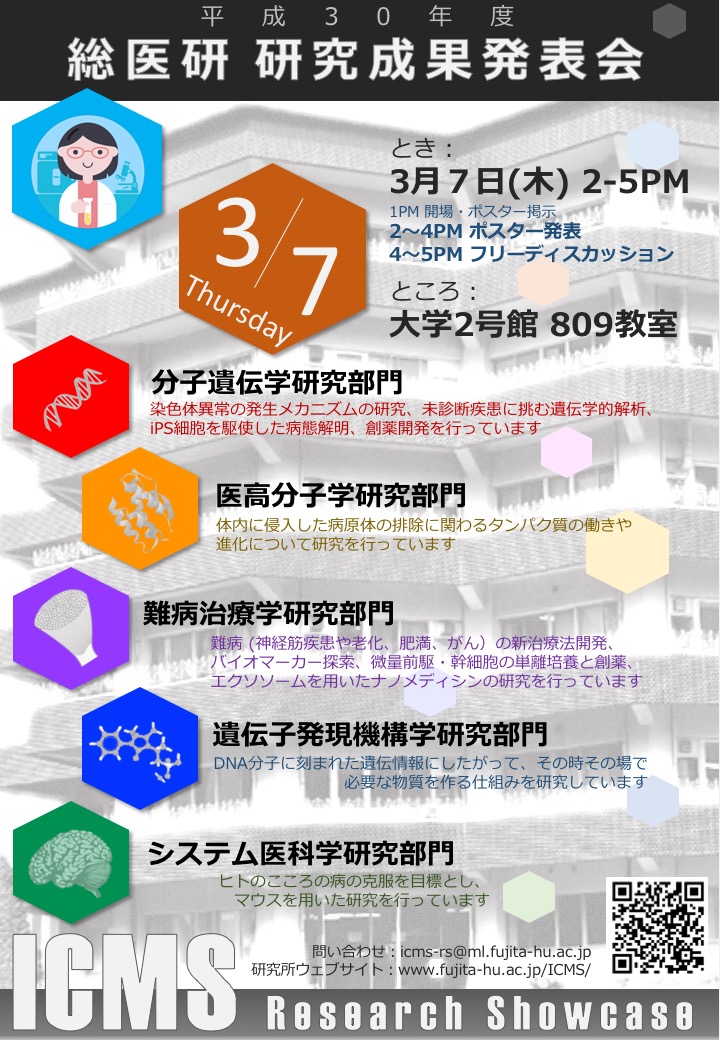 平成30年度 総合医科学研究所・研究成果発表会(2019年3月7日)