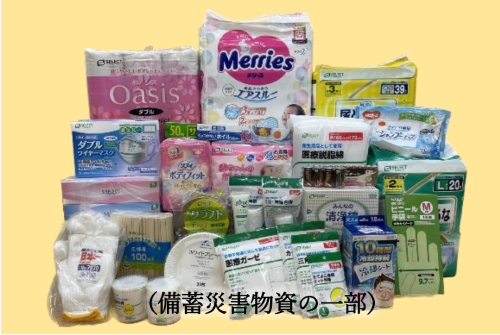 また、2023 年 2 月からは、大学内およびスギ薬局物流センターで災害物資の備蓄も開始しています。包帯、ガーゼ等の衛生材料やティッシュ、紙コップ等の日用品を中心に備蓄を行い、大規模災害が発生した場合に、地域住民の皆さまを、医療・物資を中心に支えられるよう備えています。