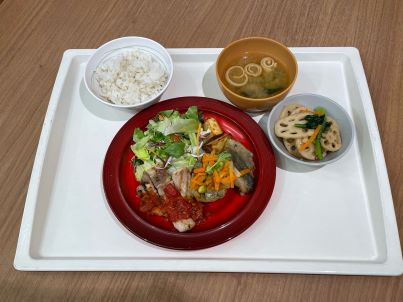 フードロス削減の取り組みとして、学食で11時から13時まで提供しているDELIランチやSpecialランチなどのメイン料理や小鉢、汁物を詰め合わせた「気まぐれプレート」を、13時~15時までの限定メニューとして販売しています。(学生400円 一般500円) その日に余ってしまう食材を捨てるのではなく、詰め合わせにしたセットを販売することで、食べ残しを減らし、フードロス削減に貢献します。
