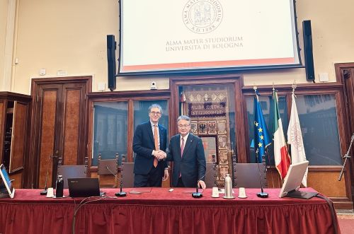 2025年2月13日、ボローニャ大学(イタリア)とMOUを締結しました。本協定により、2026年度から医学部の選択制臨床実習の新たな実習先としてボローニャ大学への学生派遣を開始します。また、同大学大学院のBiomedical and Neuromotor Sciences 、Medical and Surgical Sciences、Life Quality Studiesから短期実習生の受け入れを進めています。これにより、交換留学や教員間の交流を促進すると共に、共同研究へつなげることが期待されています。
