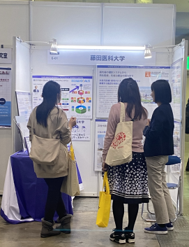 藤田医科大学は、愛知県豊明市に本部を置く大学ではありますが、10月に羽田に開所した藤田医科大学東京 先端医療研究センターの影響か、関東圏での認知度は想定よりも高い結果となりました。東京での出展ということもあり、東京・羽田に構える先端医療研究センターに興味をもってご来場いただく方がほとんどでしたが、すべてのパネルの説明を終えると、本学の学生が私生活のなかで地域貢献活動を行う豊明団地学生居住プロジェクトに関心を持たれる方も多くみられました。そのほか、災害時の電源用ソーラーパネルの設置や、全学生が防災士取得を目指す取り組みなど、本学が注力している災害時も病院機能を継続するための施策についても「ここまで防災に取り組んでいる病院があることに驚きました」との声も寄せられました。