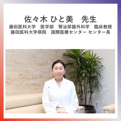 藤田医科大学病院泌尿器科開局20年目で初の女性泌尿器科医、日本泌尿器科学会初の女性理事など、女性医師として活躍する佐々木ひと美先生。若手女性医師・研究者の働きやすい職場づくりの推進や国際医療センター長として外国人患者さんへの対応など、マルチにご活躍されている佐々木先生にお話を伺いました。