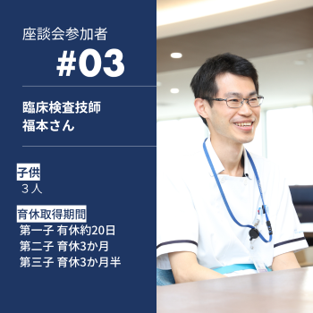 福本さん「3人の子どもがいますが、1人目のときは里帰り出産だったため育休は取りませんでした。ただ、産後に妻が体調を崩し、有休を20日ほど取りました。その経験から、2人目と3人目では育休を取りました。育休中は主に夜間の育児対応と上の子のお世話をしていました。」