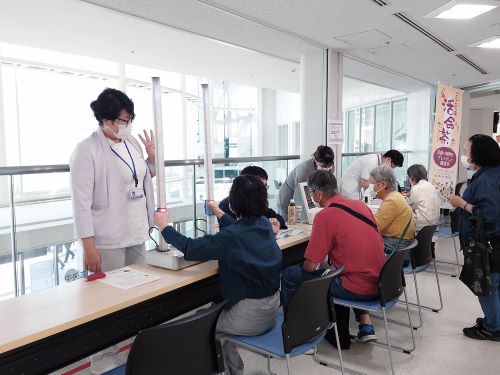 5月16日に健康増進に向けた身体づくりを学ぶ体験型のイベントを開催しました。栄養・禁煙・活動をテーマに、外来や入院中の患者さん、地域の方など約70名が参加。体組成測定やフレイルチェックで自分の体力や健康状態を見える化し、その結果をもとに日常生活に取り入れやすい運動方法を紹介しました。