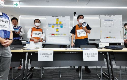 昨年度に続き、訓練のシナリオは事前に公開せず、現場での判断力や臨機応変な対応力の向上を目指しました。今年度は初の試みとして、ばんたね病院、七栗記念病院、岡崎医療センターの各対策本部をオンラインで結び、診療状況や電気・水などのライフライン情報を共有しました。さらに、輸血の提供や医薬品不足への対応も訓練内容に含め、より実践的で多角的な訓練が行われました。