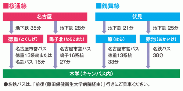 名鉄バスは、「のりば1」から「藤田保健衛生大学病院」行き、または「赤池駅(藤田保健衛生大学病院・地下鉄徳重経由)」行きにご乗車下さい。※「勅使台」行き「赤池駅(祐福寺)」行きとお間違えのないようご注意下さい。
