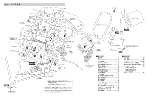 主な大学施設・生活施設、駐車場、駐輪場などの詳細位置はこちらから