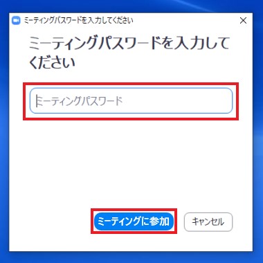メールに記載されている「パスワード」を入力いただき、「参加」をクリックしてください。