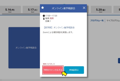 申込済みのプログラムを選択し、キャンセルしたいプログラムをクリックします