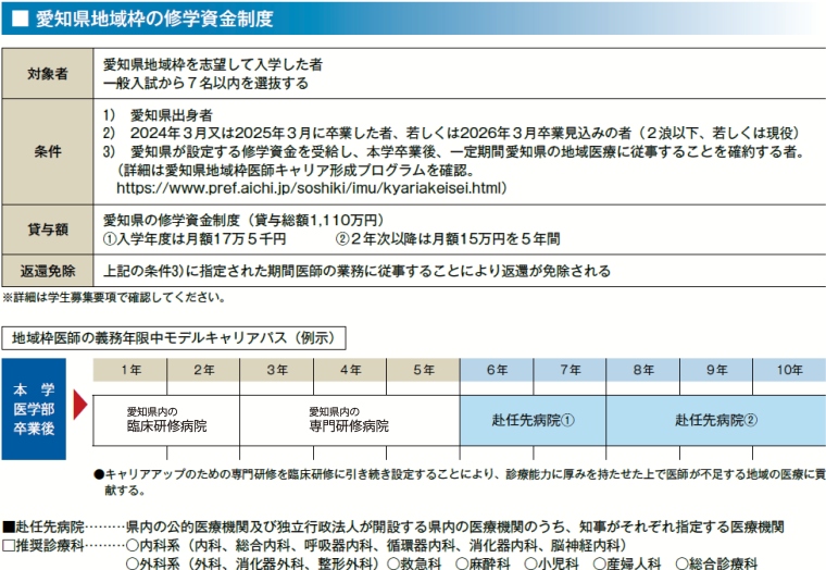 愛知県地域枠の修学資金制度(2026年度入学生用)