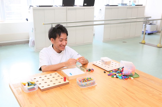 小学生の頃の夢は?──そう聞かれてすぐに答えられる人はどれぐらいいるだろうか。今回紹介する鈴木さんは、小学5年生の時からずっと「リハビリの先生になること」を目標にしてきた。つらい思いをしている人に寄り添い、支えていきたい。そして、強い意志で夢を叶えた。 やわらかな陽光が差し込む午後の作業療法室。「夢への迷いはなかったんですか?」と聞くと、鈴木さんは治療に使う道具を片付けながら、「目標に向かって進んでいくのが好きなのかな」、そう言って微笑んだ。忙しい仕事だが、休日も研修会やセミナーなどに参加し、常に勉強を欠かさない。それは自分のためだけでなく、患者さんのためでもある。作業療法士になって10年目、鈴木さんはもう次の夢に向かって歩き始めている。