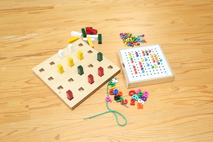 腕や手に障害がある人が、細かい作業ができるようになるための道具です。大きいものから細かいもの、角ばっているものから丸いものまで、いろいろな形があるんですよ。治療の道具だけではなく、ボタンの掛け外しが楽になる道具など、ここにないものでも患者さんに良さそうだな、と思えばホームセンターや100均で材料探して自分で作ったりすることもあります。作業療法士って100均が大好きなんですよ(笑)。リハビリって難しすぎてもいやになってしまうし、簡単すぎても飽きてしまいます。患者さん一人ひとりの目的に合わせて、難易度をうまく調整できるのが、作業療法のスペシャリストだと思います。