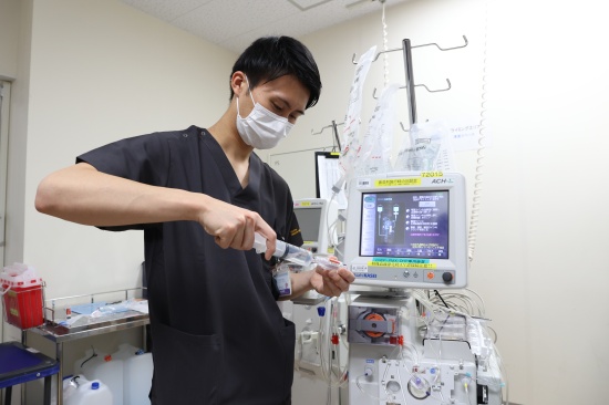 病院によっても違うでしょうけど、うちでは問診から針を血管に刺して透析するところまで、薬剤の投与以外は、全部われわれ臨床工学技士が看護師と一緒にやります。