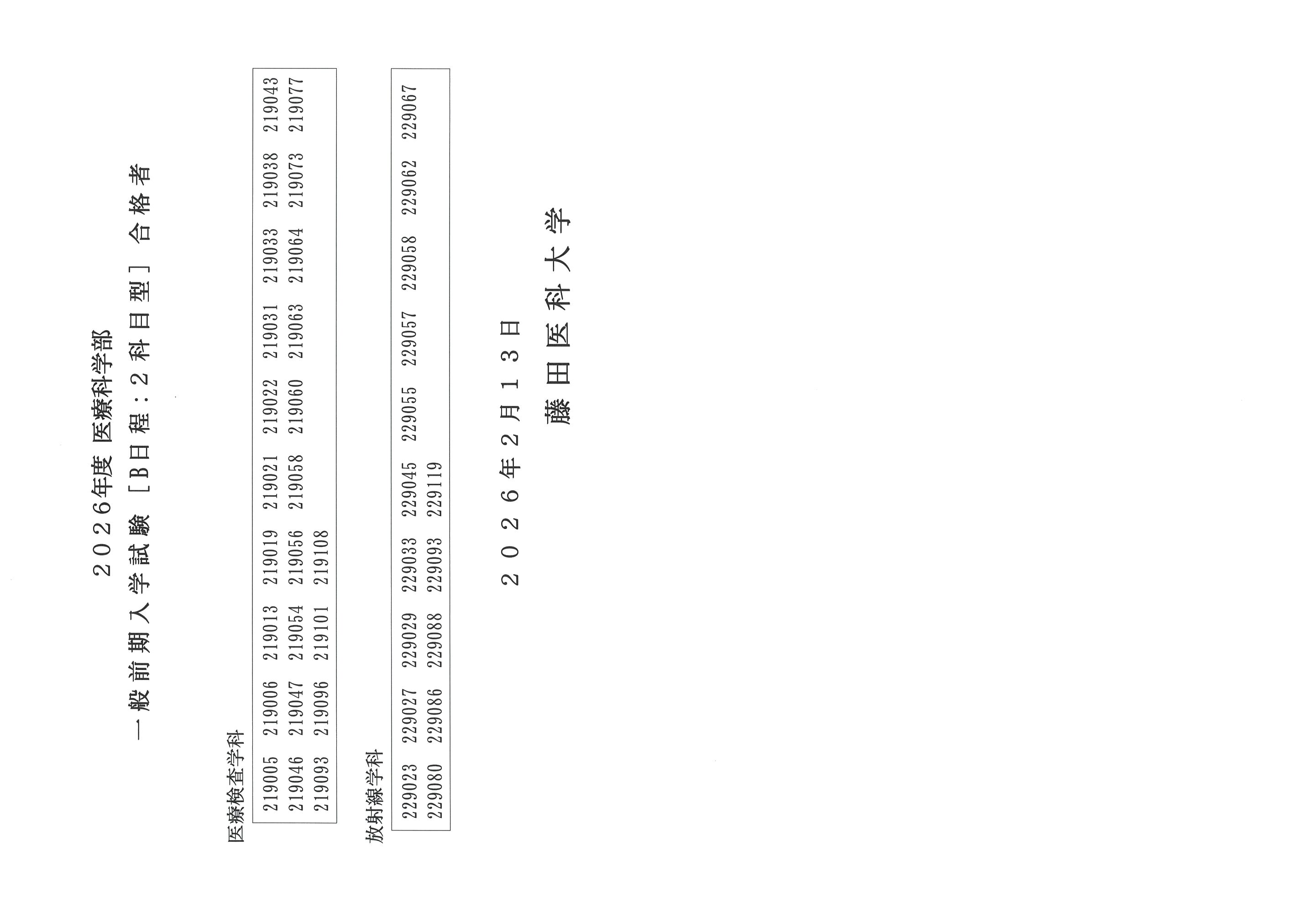 2026(令和8)年度 医療科学部 一般前期入試[B日程] 合格発表