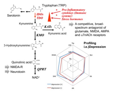 - Sakurai M, Yamamoto Y, Kanayama N, Hasegawa M, Mouri A, Takemura M, Matsunami H, Miyauchi T, Tokura T, Kimura H, Ito M, Umemura E, Boku AS, Nagashima W, Tonoike T, Kurita K, Ozaki N, Nabeshima T, Saito K. Serum Metabolic Profiles of the Tryptophan-Kynurenine Pathway in the high risk subjects of major depressive disorder. Sci Rep. 2020 Feb 6;10(1):1961.