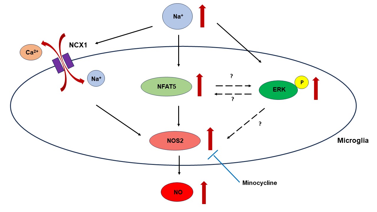 In conclusion, these findings shed light on the cellular mechanisms of microglial activation in response to hyperosmotic stress, highlighting the roles of NFAT5 and NCX, and supporting the therapeutic potential of minocycline. The study provides valuable insights for researchers and clinicians tackling the challenges of neurological dysfunctions linked to hypernatremia.