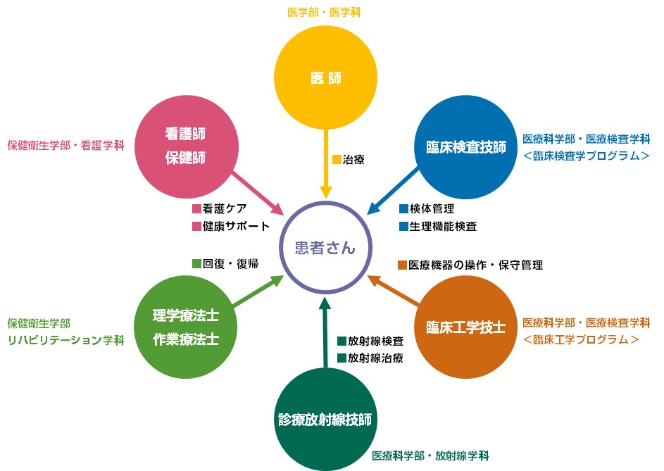 今までの医療科学部は、国家資格である臨床検査技師、診療放射線技師および臨床工学技士を養成すべく、専門性の高い教育により優れた医療人育成を目標として日々の専門教育に注力してきました。