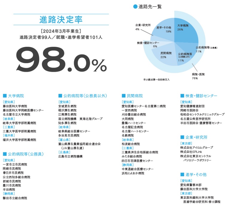 ※医療検査学科卒業生は2023年3月から。それ以前は旧 臨床検査学科・臨床工学科の実績です。