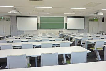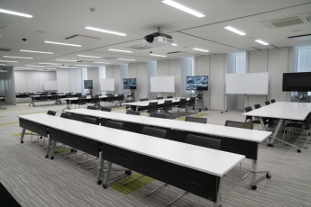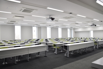6階が医療検査学科の臨床生理検査学の実習室になっています。心電図や超音波検査など人の体を直接調べる生理検査の実習で使用されます。壁は移動式になっており、フロア全体を様々な大きさの区画に仕切って使うことができます。