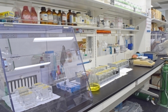 医療検査学科の実習で利用する建物です。1階には1部屋の実習室と自習や休憩に利用できる学生ホールおよび教員研究室があります。2階、3階の各フロアにはそれぞれ3部屋の実習室があり、実験系の実習で使用されます。
