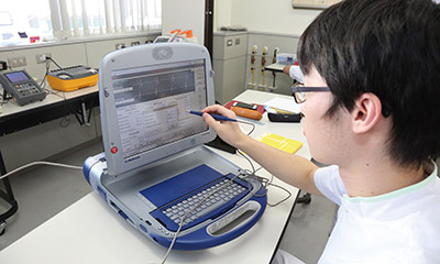 臨床工学プログラムでは、医工学的視点から医療機器の操作において定量的かつ客観的分析手法を実践するために必要な基礎工学および、医療機器を適切に扱うために機器の原理・構造、操作法、安全管理技術を学びます。