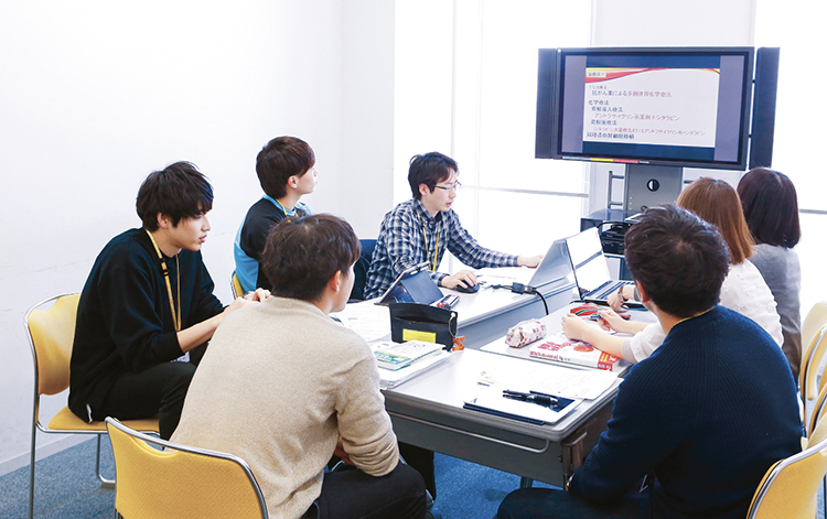 1年次から参加できる選択科目「基礎教室体験」では、週1回、興味のある研究室を訪問し、教員による解説や実験見学を通して、間近で研究に触れることで、リサーチマインドを高め、今後の研究演習をイメージするきっかけになっています。
