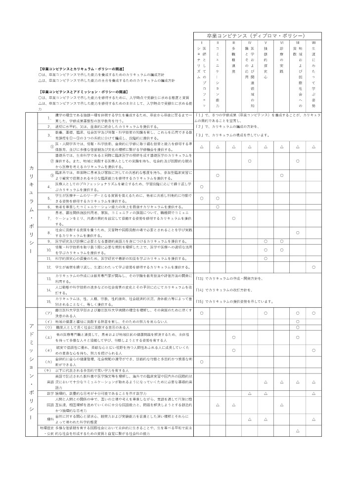 - 臨床系では、卒業時に患者及び家族に対しての共感的な態度を持ち、参加型臨床実習により確実で信頼される十分な臨床能力を修得するカリキュラムを提供する。