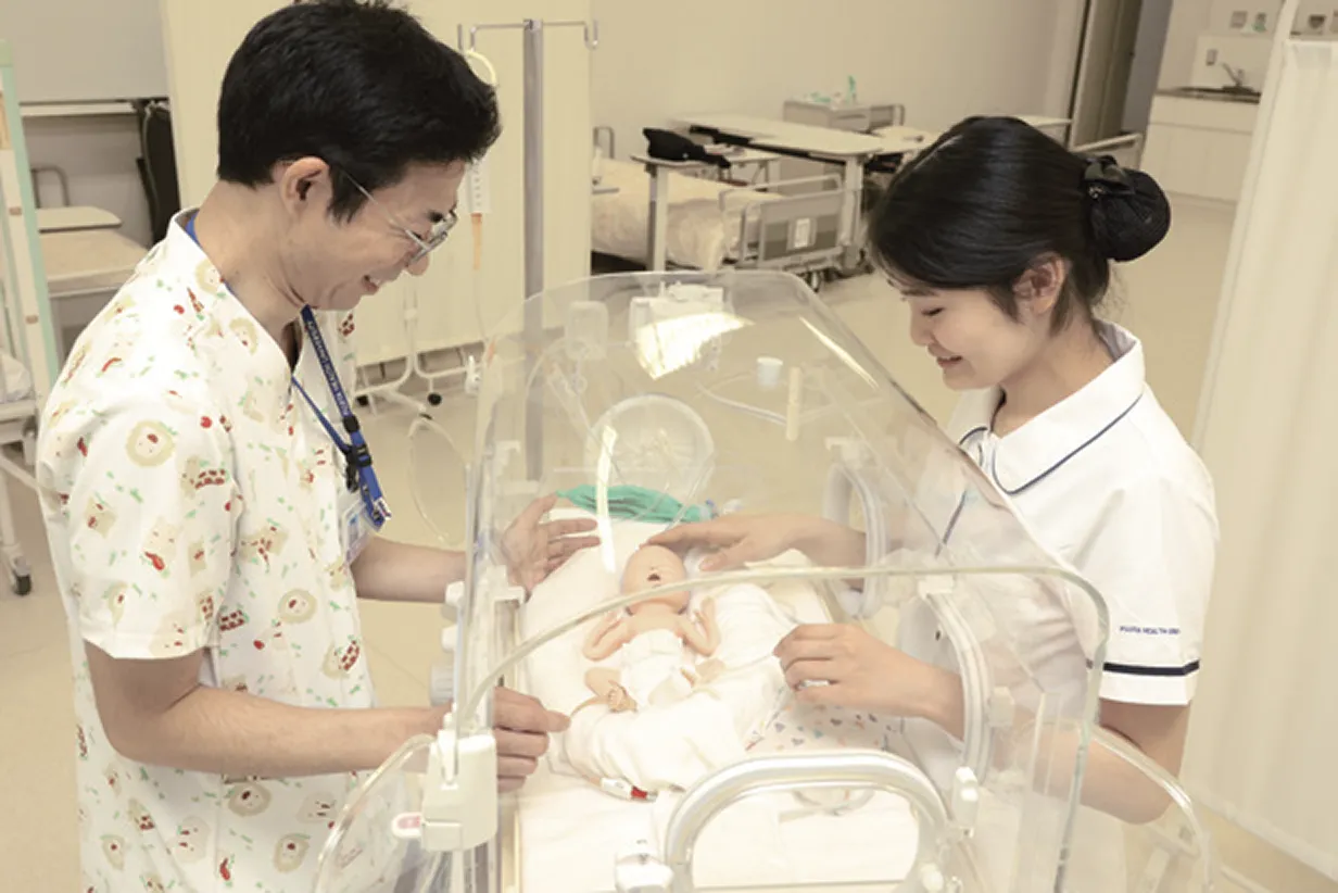 隣接する国内有数の大学病院で実習を実施。大学病院で働く現役看護師による講義や演習もおこないます。