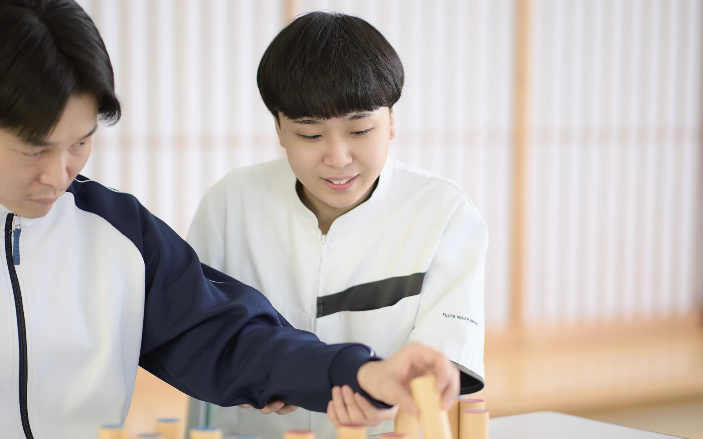 日々の暮らしに必要な応用的な動作*を分析し、活動を手段として用いて治療、指導、援助する国家資格です。作業療法の対象は、身体障害や精神障害、その時期についても発達期から高齢期まで幅広く、心身機能の維持・改善を通して、QOL(Quality of life、生活の質)の向上を目指しており、さらに広い対象へと社会的な需要が拡大しています。