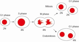アシル鎖を1本のみもつリゾ型スフィンゴ脂質は、2本のアシル鎖をもつ通常のセラミド型スフィンゴ脂質とは異なる物性を膜に与えるだけでなく、これら自身が様々な生理活性を有しています。私たちはこれまでに、リゾ型で極性頭部にガラクトースを持つ生体内糖脂質であるサイコシンが、細胞質分裂を特異的に阻害することで細胞の多倍体化、巨大化を誘導することを明らかにしてきました。細胞分裂の最終段階である細胞質分裂をスキップして細胞周期が回っていく「エンドマイトーシス」という現象は、生体内では血小板の前駆体細胞である巨核球の産生などの際に生じます。私たちは、サイコシンの標的作用機序の解明を介して、巨大細胞を産み出すエンドマイトーシスの分子機構を理解するべく研究を進めています。