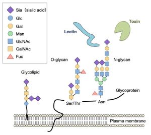 私たちの細胞の表面は糖鎖で覆われています。これらの糖鎖の構造は細胞の種類や状態によって異なり、細胞の「顔」とも言われています。糖鎖は、その構造を特異的に認識し、結合する分子(レクチン)と相互作用することにより、様々な生理機能を担っています。