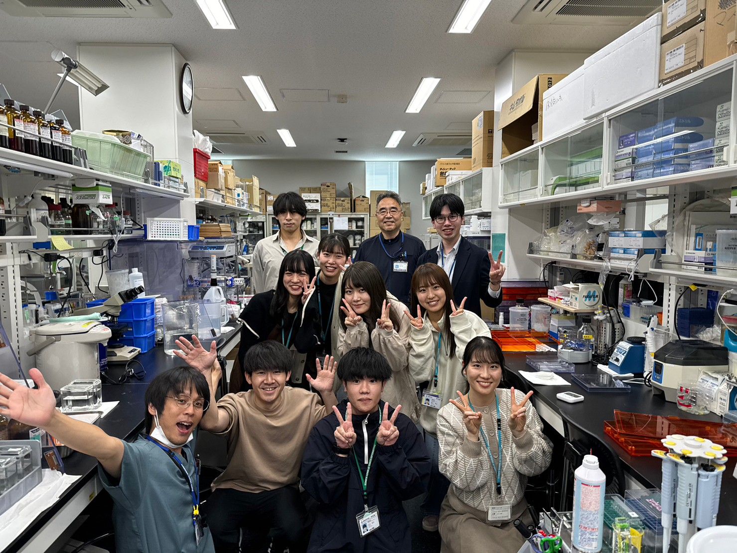 病理組織細胞学分野のメンバーは、病理検査学や解剖学に関する学部教育・大学院教育に従事するとともに、病理診断法の開発や検査技術の改良をはじめとした臨床に直結する研究、疾患の病態や病因のメカニズムに迫る基礎研究に日夜取り組み、臨床医学への貢献を目指しています。また、本研究室は「臨床連携ユニット」としての側面を持ち、本学教育病院の病理部と相互に連携することで、診療/検査・教育・研究の質の向上を目指しています。その一環として、細胞検査士資格の取得を希望する大学院生に向けては、大学院教育として病理部と連携した「実践的カリキュラム」を行い、現場で活躍できる細胞検査士の育成を行っています。