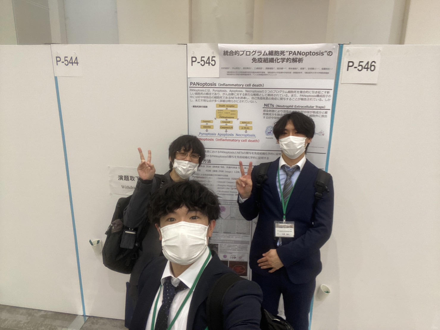 - 白井留加、平山将也、原田隼兵、三浦香里、須藤健助、稲田健一、塚本徹哉、堤寛、安倍雅人、塩竈和也:統合的プログラム細胞死“PANoptosis”の免疫組織化学的解析(第112回日本病理学会)2023.