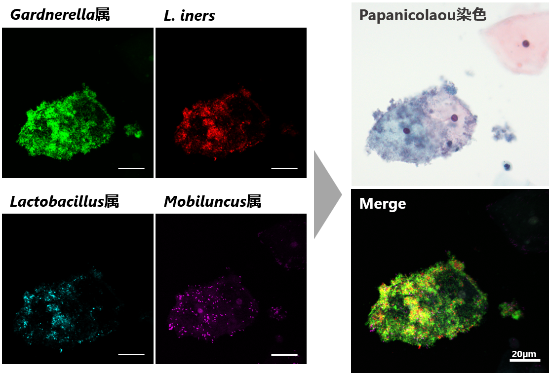 細胞診検体を用いた各種細菌を同定するFISH法を確立し、clue cellに付着した各種細菌を鑑別することができる。