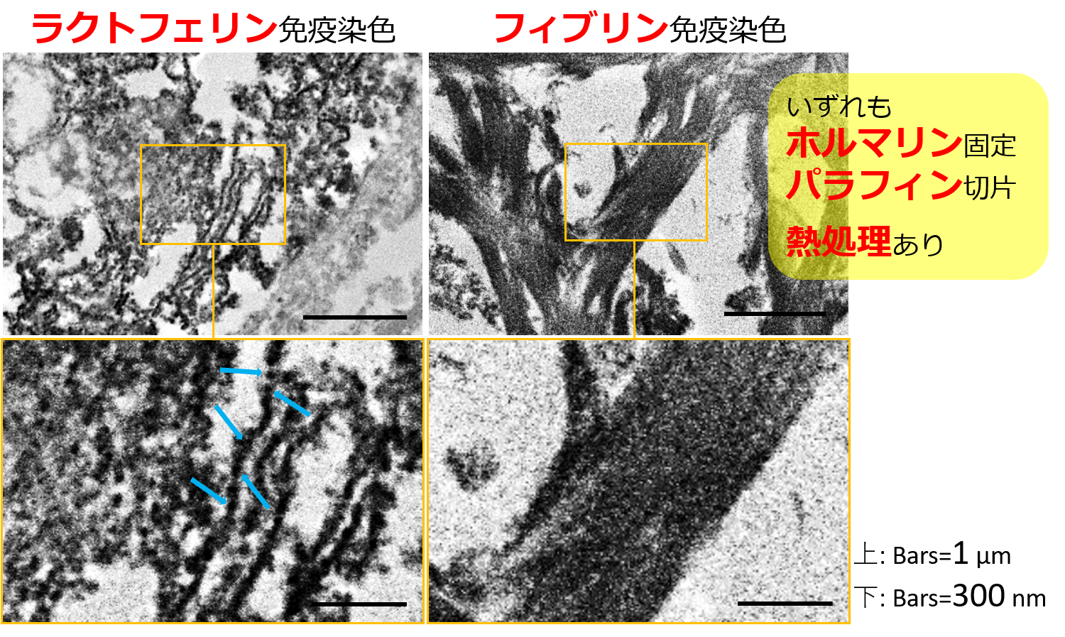 電顕レベルでも、NETsは細く、フィブリンは太い傾向が観察される。