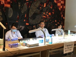 8月下旬に北海道二海郡八雲町で実施される住民健診に参加し、アンケート調査および血液や尿の検体収集を実施しています。疫学研究を実施する上で欠かせないイベントです。