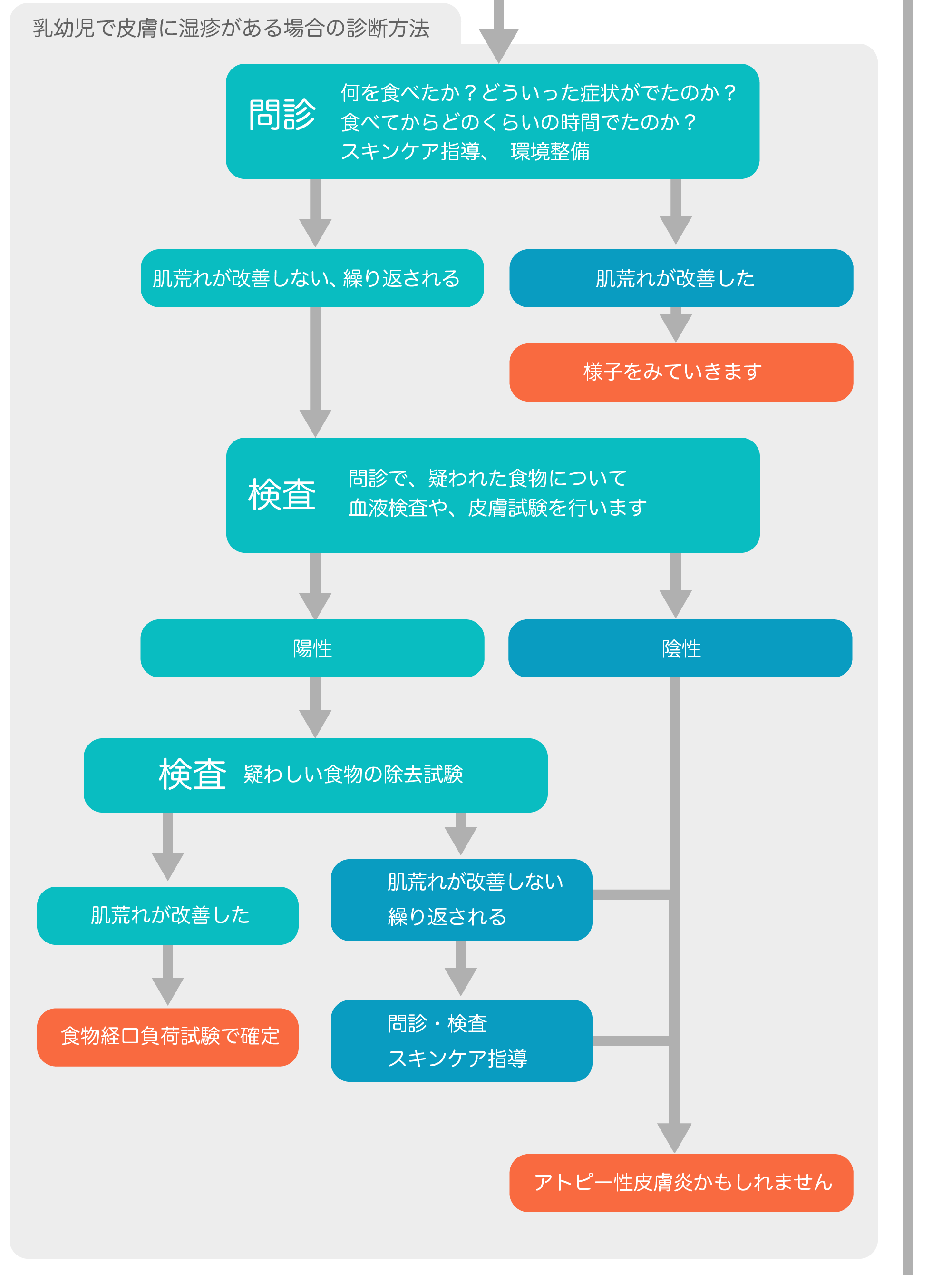 原因食物の除去でアレルギー症状を起こすことなく、かつ、栄養障害を起こさないように、必要最小限の除去食が基本です。アレルギー症状を起こさない食品の範囲は詳細な問診や経口負荷試験で医師に決めてもらいましょう。