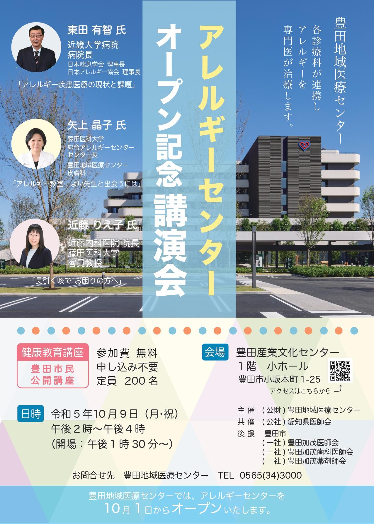 2023年10月9日(月・祝)14:00~16:00に豊田地域医療センターが講演会を開催致します。