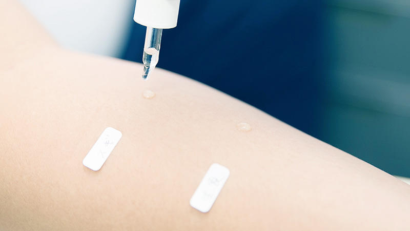 原因精査のため、パッチテストやプリックテストなどを積極的におこないます。 また、先端アレルギー免疫共同研究講座の高度な研究技術の活用による抗原解析もおこないます。