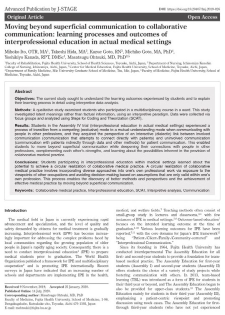 医学教育、多職種連携教育、多職種連携についての質的研究 -Qualitative research in medical education, interprofessional education, interprofessional collaboration