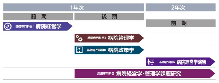 必修及び選択科目を含め30単位以上履修し、2年次前期の課題研究による 「病院経営学・病院管理学課題研究成果物」に向けて指導