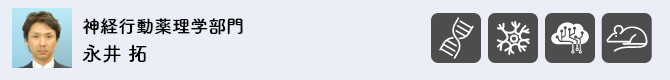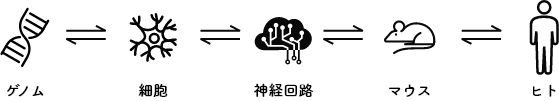 精神・神経病態解明センターでは、ゲノム解析学、細胞生物学、神経生理学、神経化学、行動薬理学、ヒトイメージングおよび計算科学の7部門で構成され、ゲノムから個体に至るシームレスな研究体制が整えられています。 本研究センターの特徴は、これらの研究室が協同して精神・神経疾患の病態解明、未知である脳・こころの基本的原理の理解、新規治療法および新規技術の開発を目指す点です。また、学内の研究センターや各学部学科など関連組織とも密接に連携して世界最先端の研究を推進します。