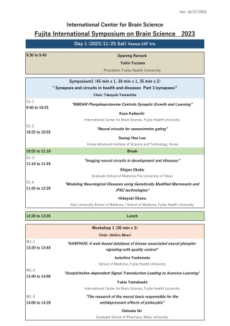 International Center for Brain Science (ICBS), Fujita Health University (FHU) will hold Fujita International Symposium on Brain Science 2023 with ICBS scientists and top researchers from around the world, in this November.