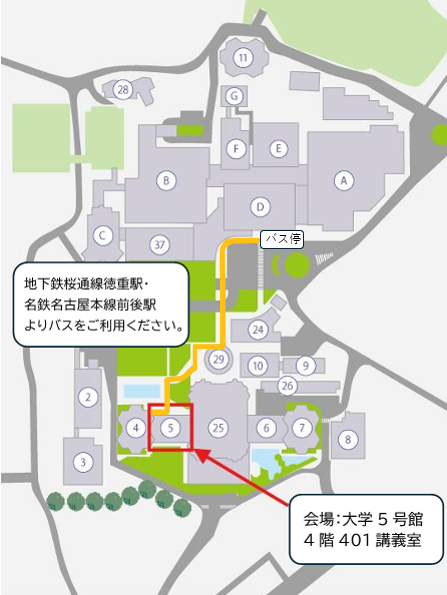 ・学外から参加される方につきましては、駐車場の確保行っておりませんので、公共交通機関で